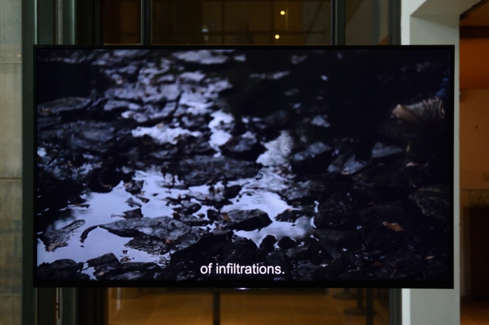The different works which constitute La part sombre follow some events at the margin of the canonical petrol narrative that have contributed to the current ecological shift, and take as a paradigm the change in shape and state of the oil shale, a hydrocarbon-rich black sedimentary rock. Considering it as a score and a recording surface where natural processes and human activities are inscribed – from the fossilization of the Permian fauna and flora (250 Ma) to the industrial exploitation of fossil fuels, passing through the Gallic and Roman architecture – the works question our ambiguous relationship to energy and the mineral world and give voice to the deaf mutation of ancient organisms, to mythological divinities and to the still unknown language of high-tech machines that begin to occupy the subsoil.